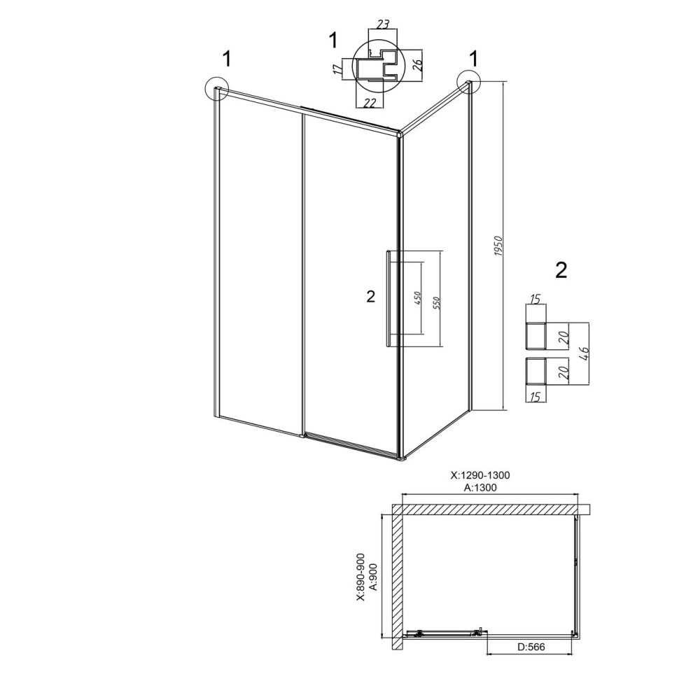 Душевой уголок Grossman Galaxy имеет размер 130х90х195 см. Прямоугольная форма, цвет профиля — черный, исполнение полотна двери — тонированное. Конструкция состоит из 3 секций. Раздвижной механизм открывания. Устанавливается в облицованный кафелем угол ванной комнаты на поддон.