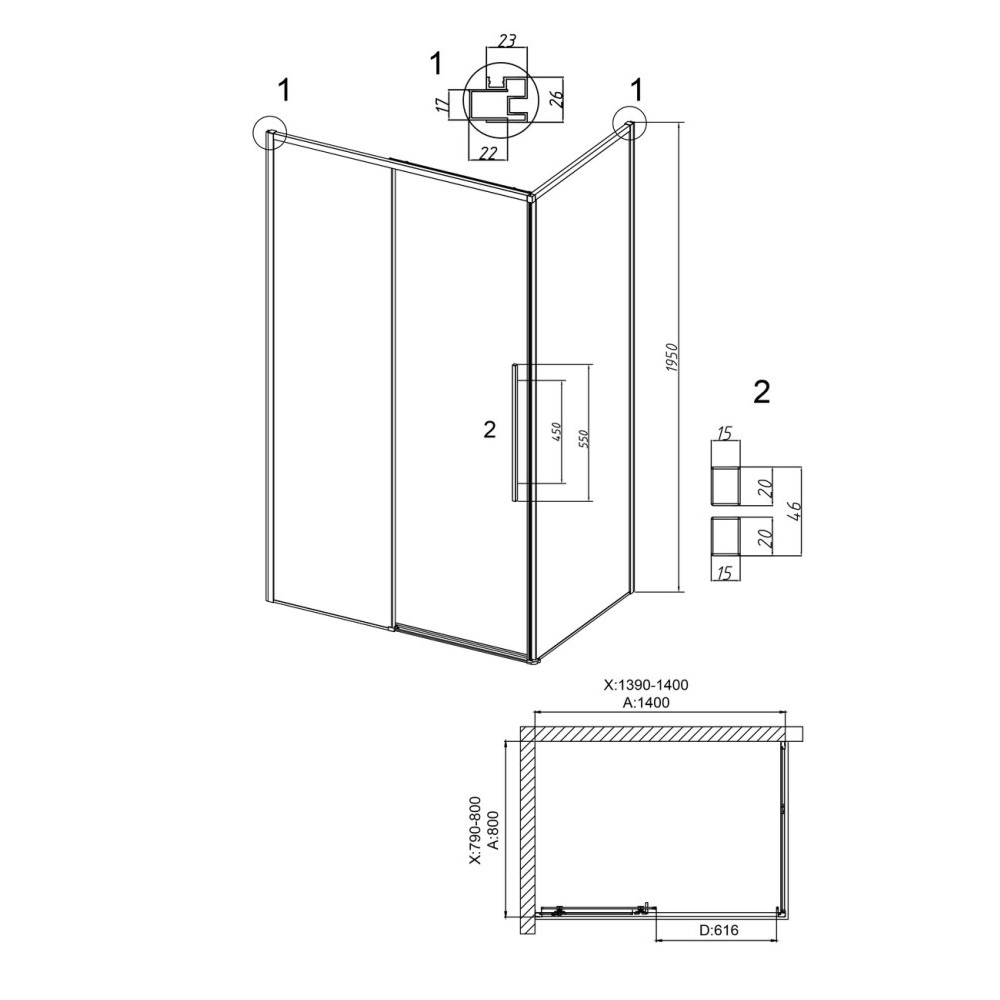 Душевой уголок Grossman Galaxy имеет размер 140х80х195 см. Прямоугольная форма, цвет профиля — графит, исполнение полотна двери — тонированное. Конструкция состоит из 3 секций. Раздвижной механизм открывания. Устанавливается в облицованный кафелем угол ванной комнаты на поддон.
