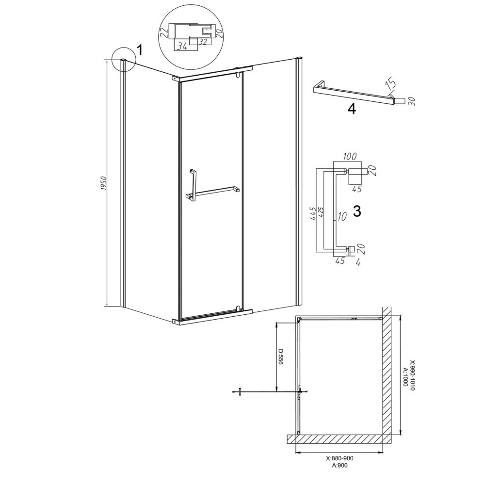 Душевой уголок Grossman Pragma имеет размер 100х90х195 см. Прямоугольная форма, цвет профиля — золото, исполнение полотна двери — прозрачное. Конструкция состоит из 3 секций. Распашная механизм открывания. Устанавливается в облицованный кафелем угол ванной комнаты на поддон.