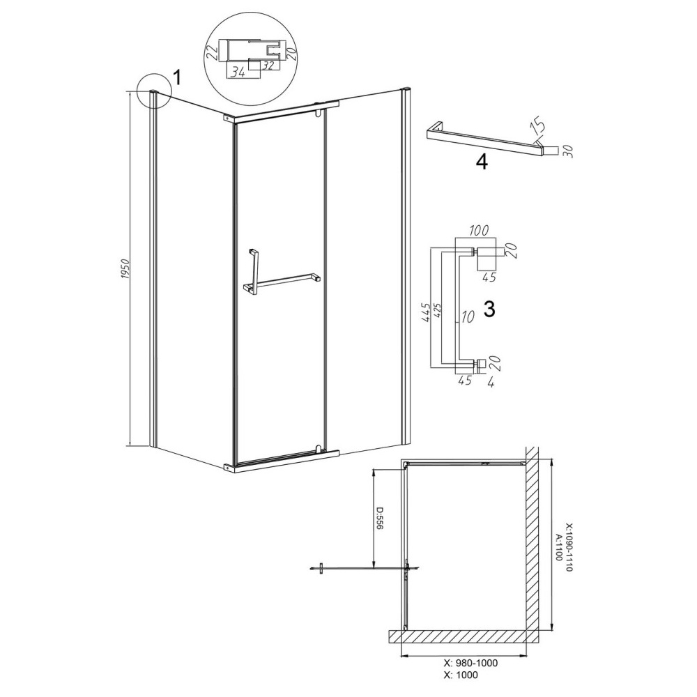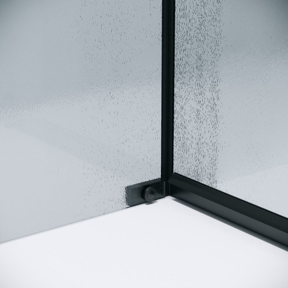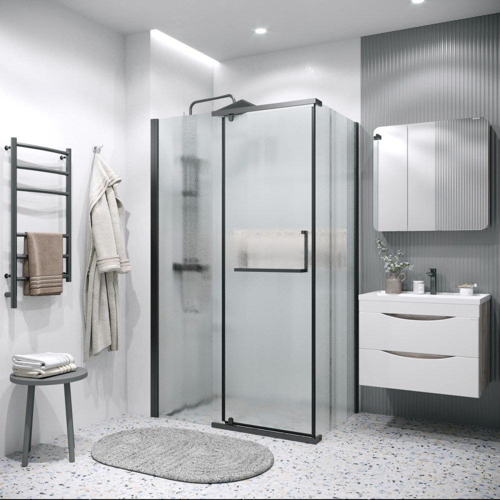 Душевой уголок Grossman Pragma имеет размер 110х100х195 см. Прямоугольная форма, цвет профиля — черный, исполнение полотна двери — рифленое. Конструкция состоит из 3 секций. Распашная механизм открывания. Устанавливается в облицованный кафелем угол ванной комнаты на поддон.