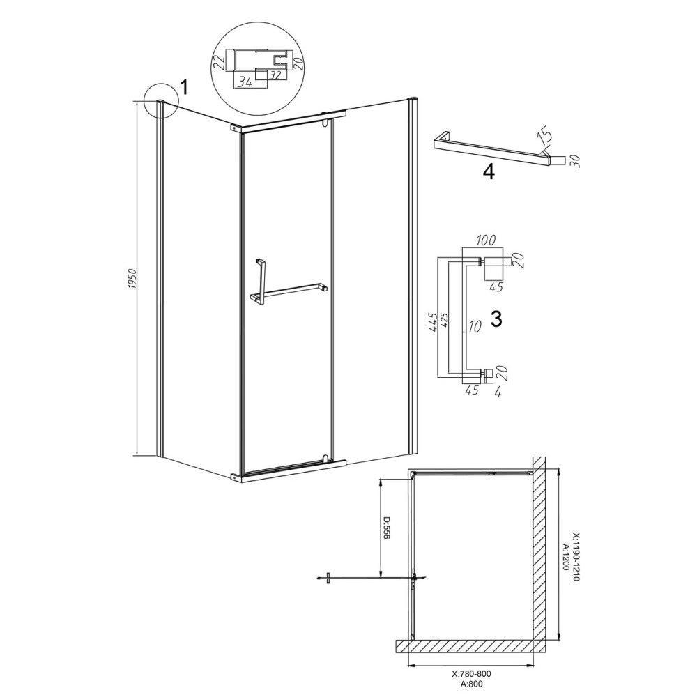 Душевой уголок Grossman Pragma имеет размер 120х80х195 см. Прямоугольная форма, цвет профиля — графит, исполнение полотна двери — прозразное. Конструкция состоит из 3 секций. Распашная механизм открывания. Устанавливается в облицованный кафелем угол ванной комнаты на поддон.