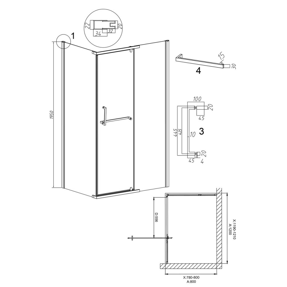 Душевой уголок Grossman Pragma имеет размер 120х80х195 см. Прямоугольная форма, цвет профиля — черный, исполнение полотна двери — рифленое. Конструкция состоит из 3 секций. Распашная механизм открывания. Устанавливается в облицованный кафелем угол ванной комнаты на поддон.