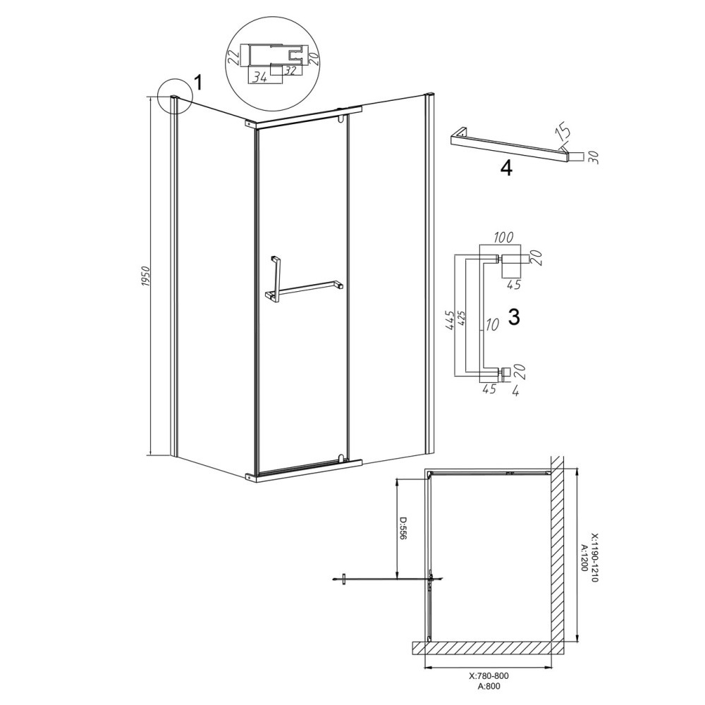 Душевой уголок Grossman Pragma имеет размер 120х80х195 см. Прямоугольная форма, цвет профиля — хром, исполнение полотна двери — рифленое. Конструкция состоит из 3 секций. Распашная механизм открывания. Устанавливается в облицованный кафелем угол ванной комнаты на поддон.