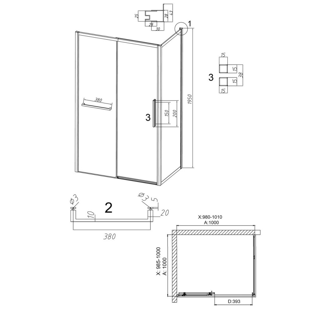 Душевой уголок Grossman Style имеет размер 100х100х195 см. Прямоугольная форма, цвет профиля — черный, исполнение полотна двери — прозрачное. Конструкция состоит из 3 секций. Раздвижная механизм открывания. Устанавливается в облицованный кафелем угол ванной комнаты на поддон.