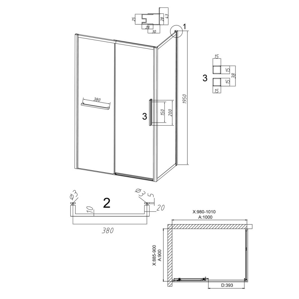 Душевой уголок Grossman Style имеет размер 100х90х195 см. Прямоугольная форма, цвет профиля — хром, исполнение полотна двери — прозрачное. Конструкция состоит из 3 секций. Раздвижная механизм открывания. Устанавливается в облицованный кафелем угол ванной комнаты на поддон.