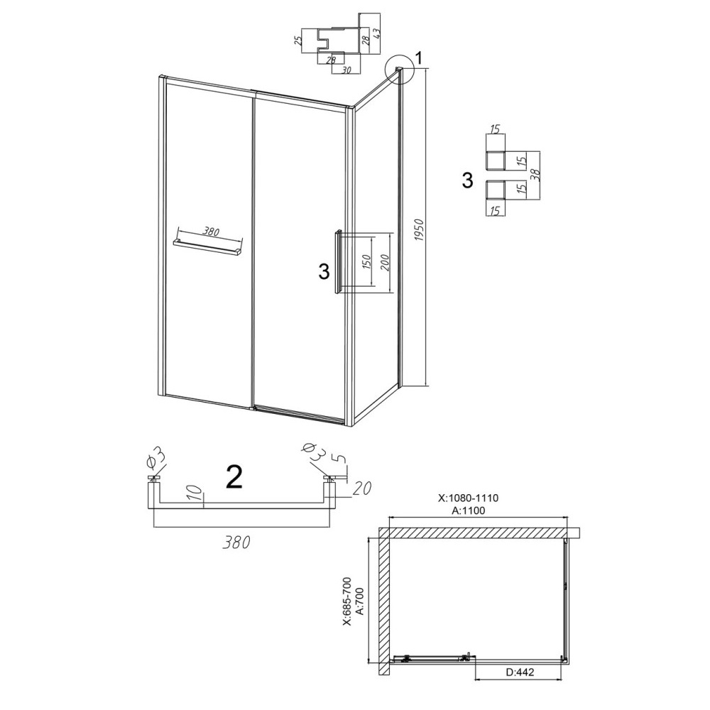 Душевой уголок Grossman Style имеет размер 110х70х195 см. Прямоугольная форма, цвет профиля — черный, исполнение полотна двери — прозрачное. Конструкция состоит из 3 секций. Раздвижная механизм открывания. Устанавливается в облицованный кафелем угол ванной комнаты на поддон.