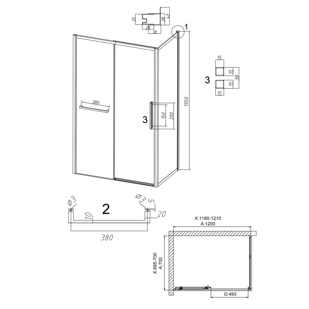 Душевой уголок Grossman Style имеет размер 120х70х195 см. Прямоугольная форма, цвет профиля — черный, исполнение полотна двери — прозрачное. Конструкция состоит из 3 секций. Раздвижная механизм открывания. Устанавливается в облицованный кафелем угол ванной комнаты на поддон.