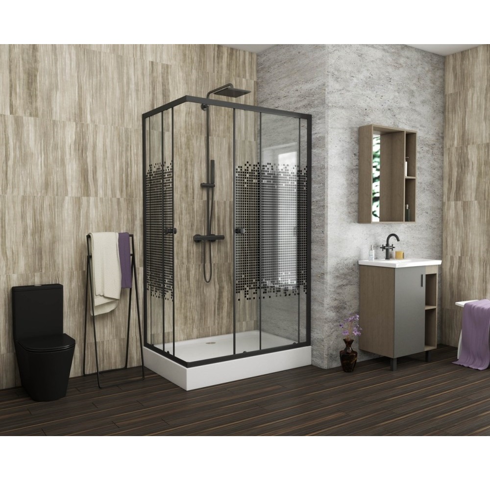 Душевой уголок Niagara Eco 100х80 с поддоном Черный / С рисунком NG-018-14QBLACK