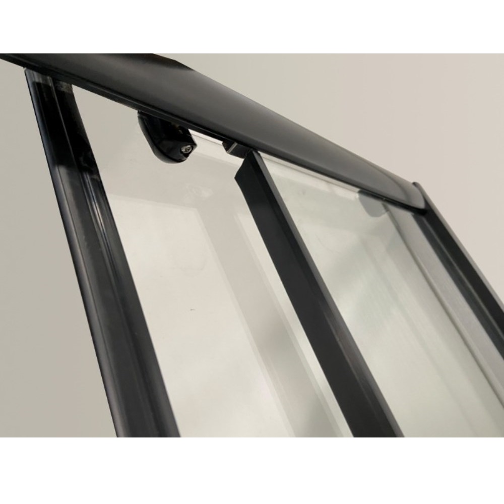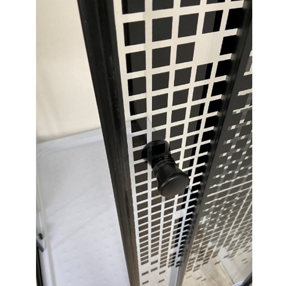 Душевой уголок Niagara Eco имеет размер 100х80х195 см. Прямоугольная форма, цвет профиля — черный, исполнение полотна двери — с рисунком. Конструкция состоит из 4 секций. Раздвижной механизм открывания. Устанавливается в облицованный кафелем угол ванной комнаты на поддон.