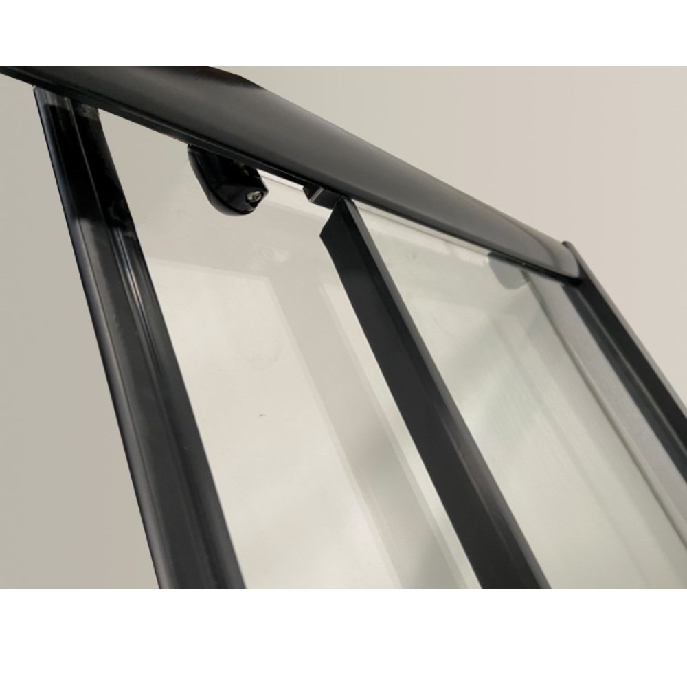 Душевой уголок Niagara Eco имеет размер 120х80х195 см. Прямоугольная форма, цвет профиля — черный, исполнение полотна двери — с рисунком. Конструкция состоит из 4 секций. Раздвижной механизм открывания. Устанавливается в облицованный кафелем угол ванной комнаты на поддон.