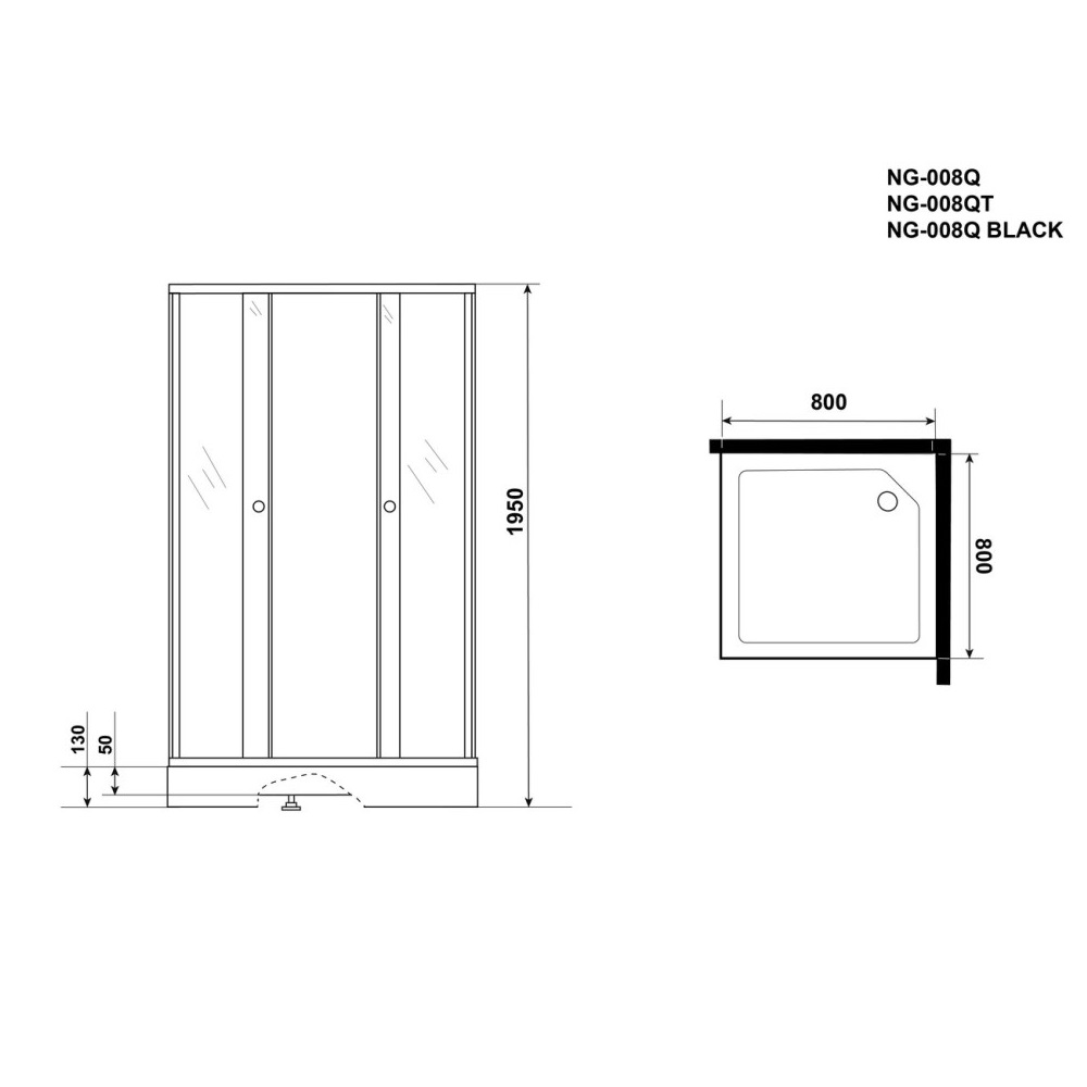 Душевой уголок Niagara Eco имеет размер 80х80х195 см. Квадратная форма, цвет профиля — хром, исполнение полотна двери — матовое. Конструкция состоит из 4 секций. Раздвижной механизм открывания. Устанавливается в облицованный кафелем угол ванной комнаты на поддон.
