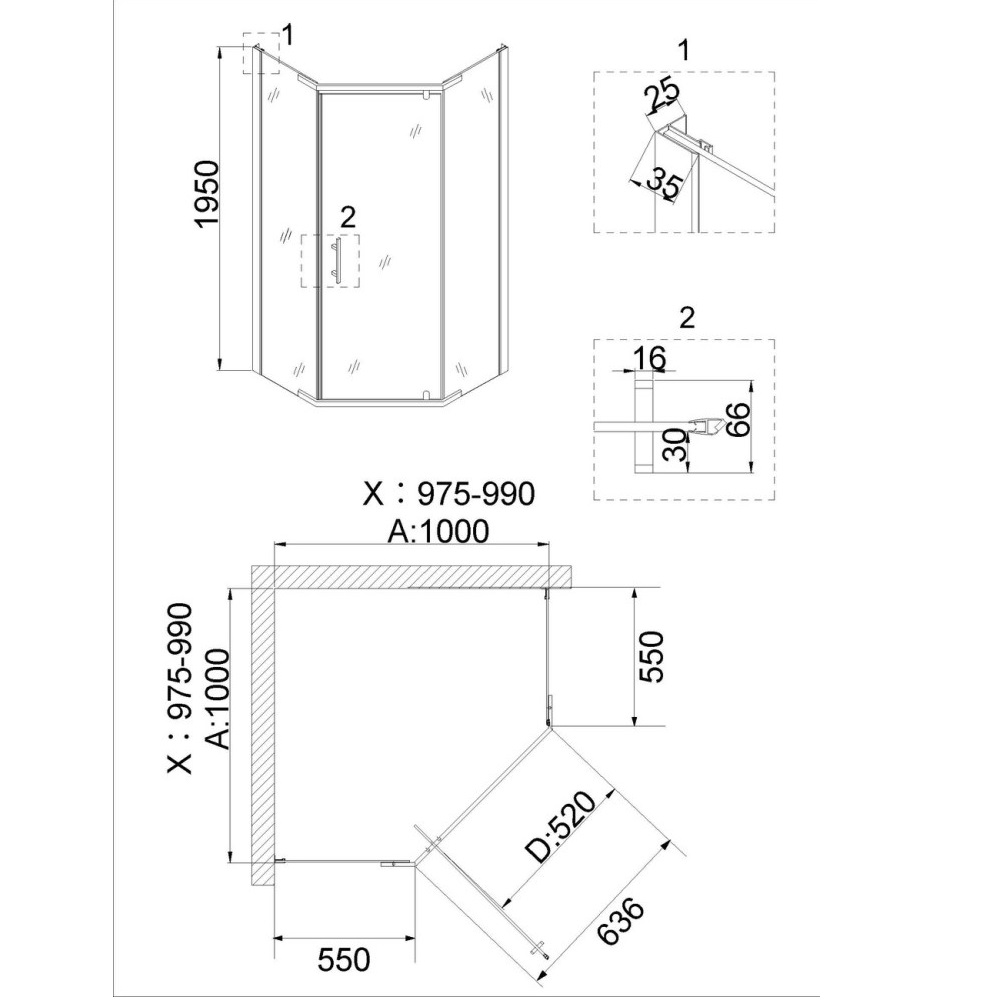 Душевой уголок Niagara Nova имеет размер 100х100х195 см. Пятиугольная форма, цвет профиля — черный, исполнение полотна двери — прозрачное. Конструкция состоит из 3 секций. Распашной механизм открывания. Устанавливается в облицованный кафелем угол ванной комнаты на поддон.