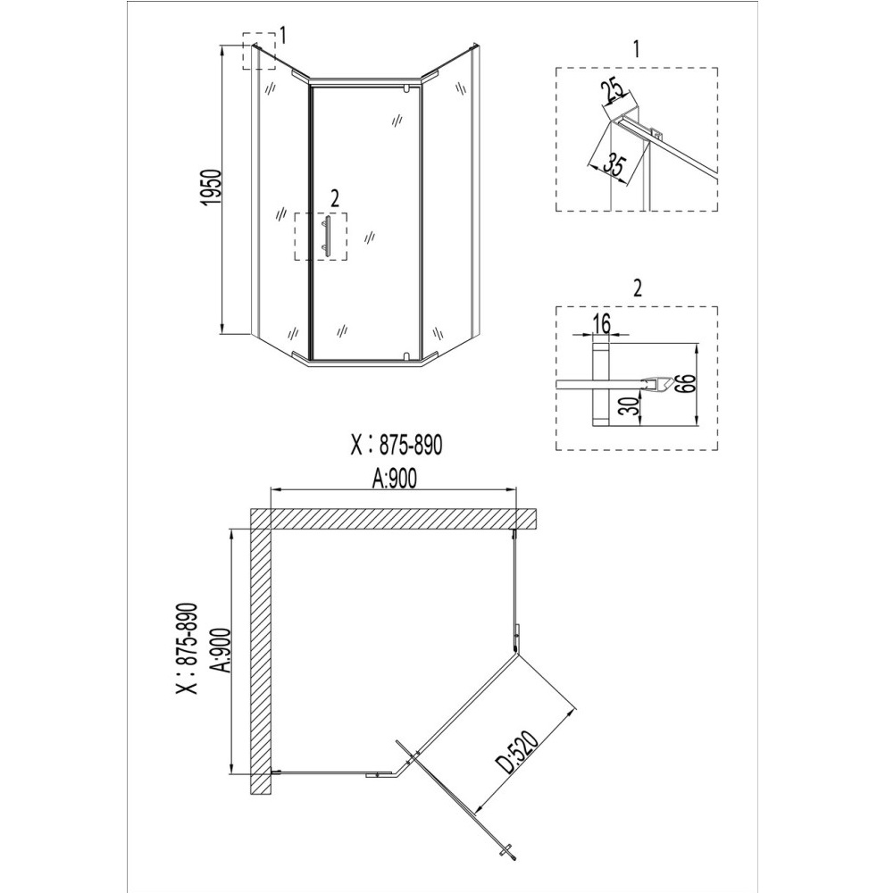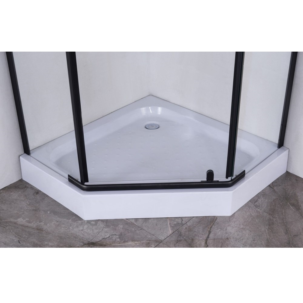 Душевой уголок Niagara Nova имеет размер 90х90х195 см. Пятиугольная форма, цвет профиля — черный, исполнение полотна двери — прозрачное. Конструкция состоит из 3 секций. Распашной механизм открывания. Устанавливается в облицованный кафелем угол ванной комнаты на поддон.