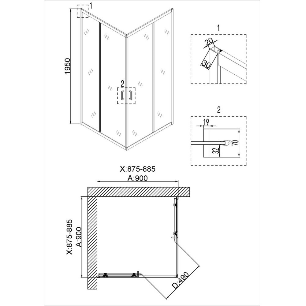 | Габариты | 90 × 90 × 195 см |