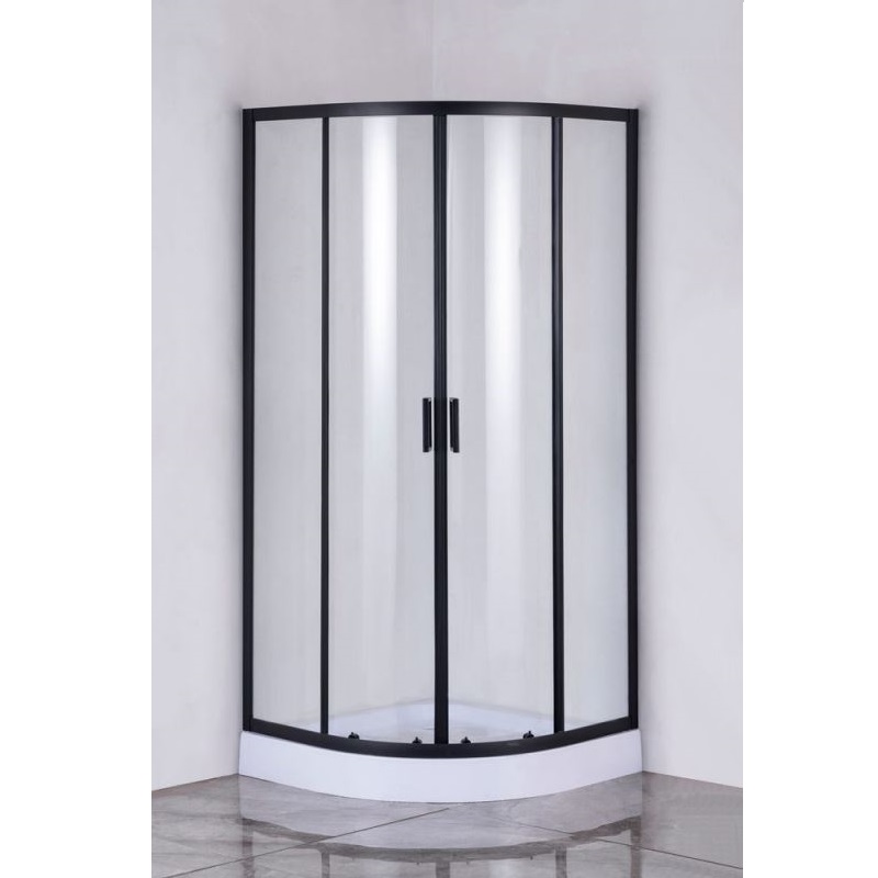 Душевой уголок Taliente TA имеет размер 89х89 см. Форма — четверть груга, цвет профиля — черный, исполнение полотна двери — прозрачное. Конструкция состоит из 4 секций: 2 неподвижных и раздвижных. Устанавливается в облицованный кафелем угол ванной комнаты на поддон.