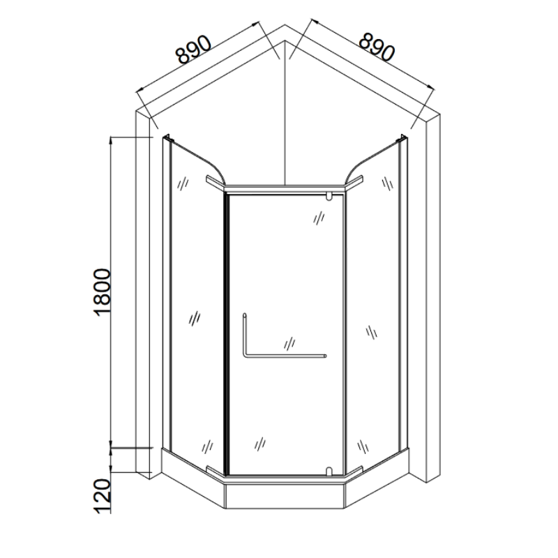 Душевой уголок Taliente TA имеет размер 89х89 см. Форма — четверть груга, цвет профиля — хром, исполнение полотна двери — прозрачное. Конструкция состоит из 4 секций: 2 неподвижных и раздвижных. Устанавливается в облицованный кафелем угол ванной комнаты на поддон.
