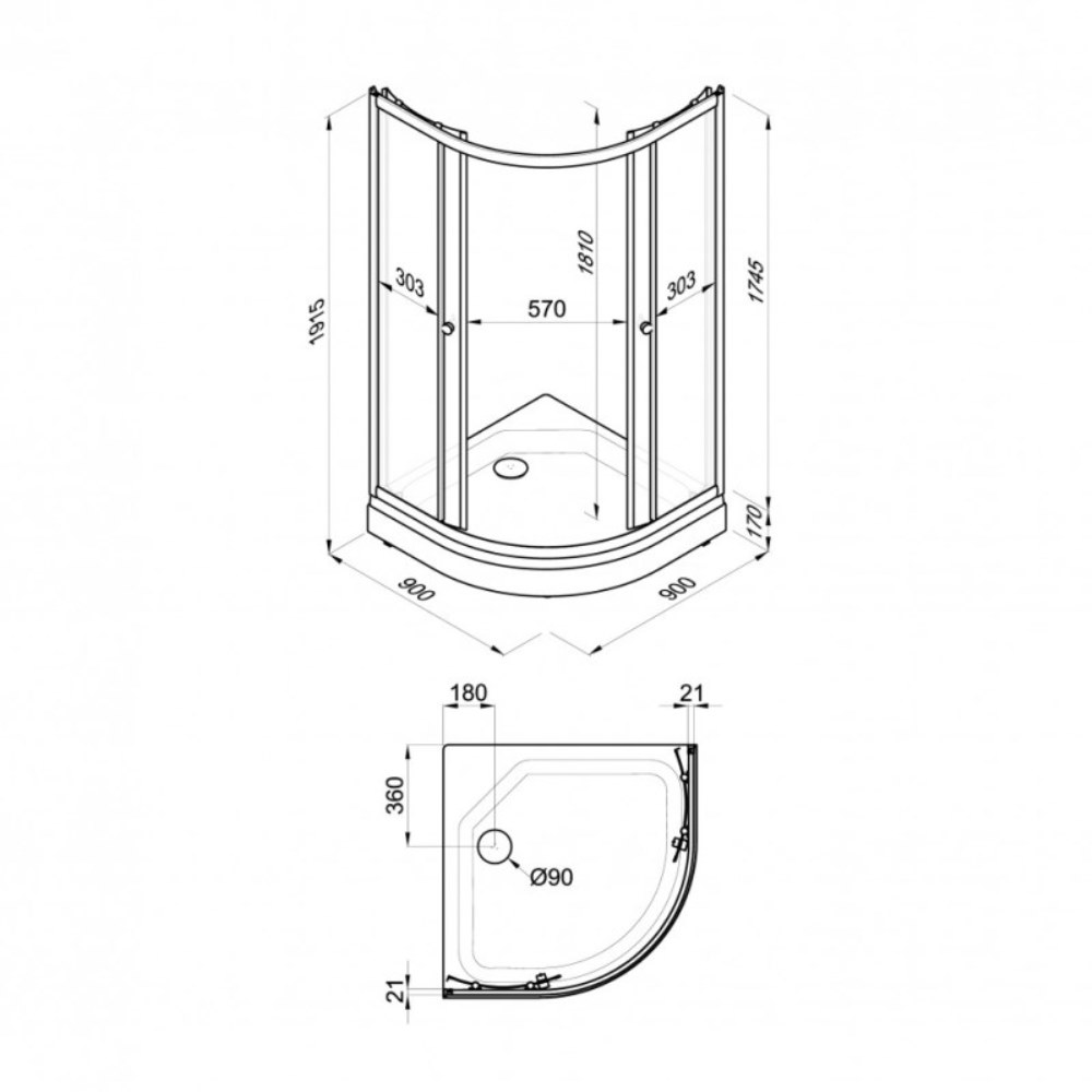 Габариты 90 × 90 × 191 см