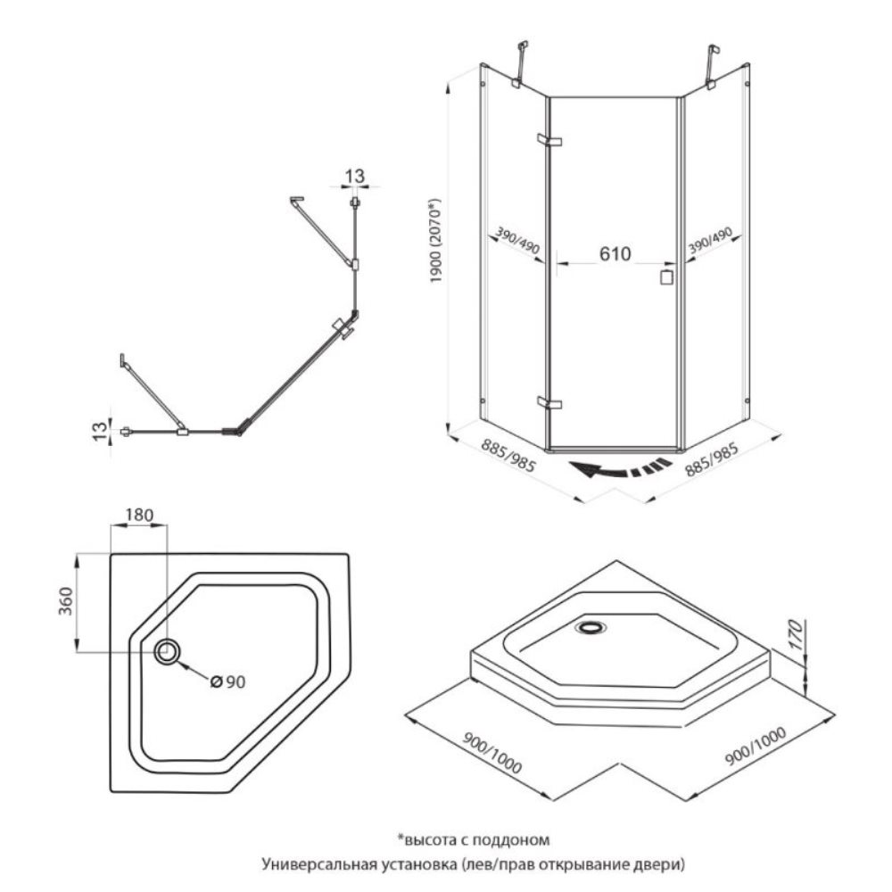 | Тип изделия | Душевой уголок |