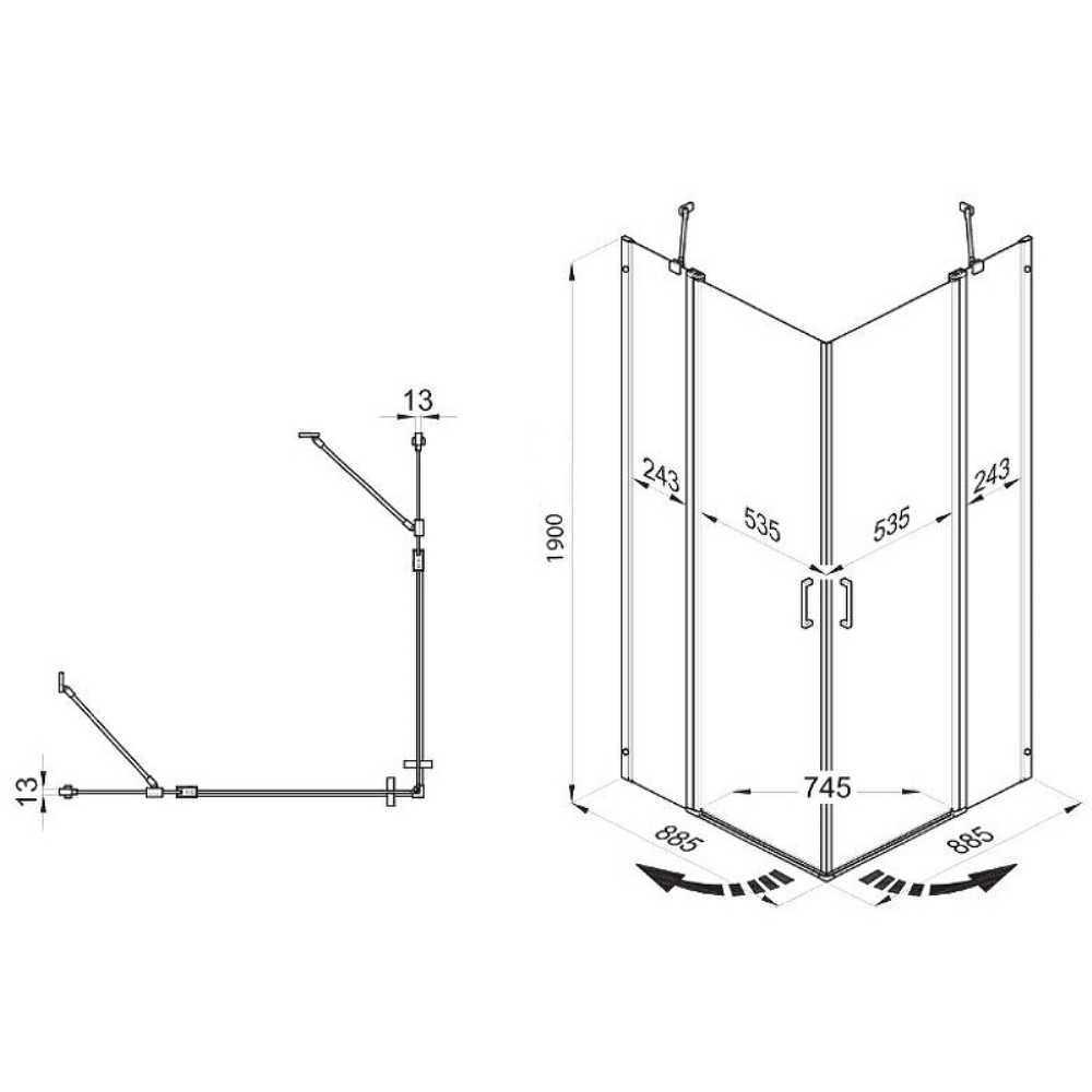 Душевой уголок Triton Тау имеет размер 88,5х88,5 см. Форма — квадратная, цвет профиля — черный, исполнение полотна двери — прозрачное. Конструкция состоит из 4 секций. Распашная механизм открывания. Устанавливается в облицованный кафелем угол ванной комнаты на поддон или на пол.
