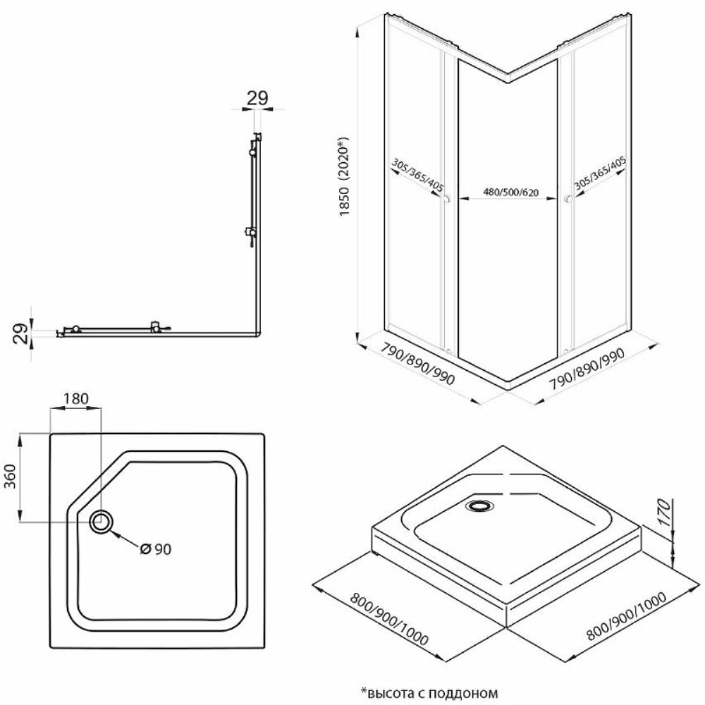 | Тип изделия | Душевой уголок |