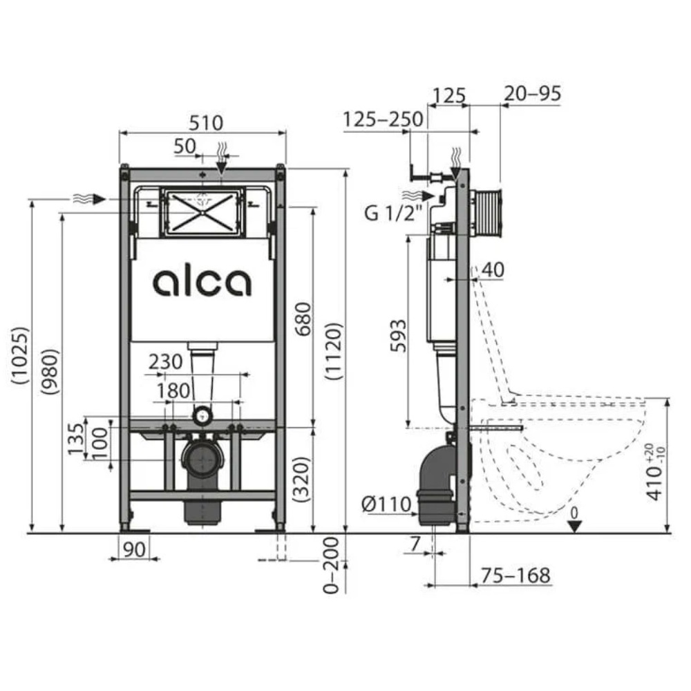 Инсталляция Alcadrain Sadromodul для скрытого монтажа унитаза с клавишей смыва с клавишей смыва — это система, предназначенная для установки подвесного унитаза. Конструкция представляет собой прочную раму и бачок скрытого монтажа объемом 9 л.