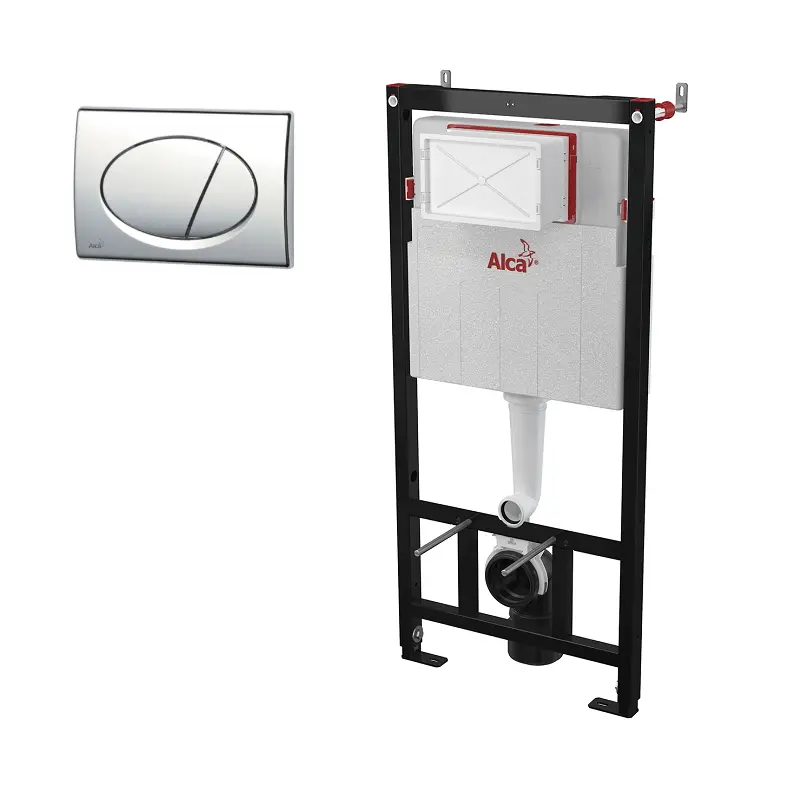 Инсталляция для унитаза Alcaplast Sadroмodul — это система, предназначенная для установки подвесного унитаза. Конструкция представляет собой прочную раму и бачок скрытого монтажа объемом 9 литров.
