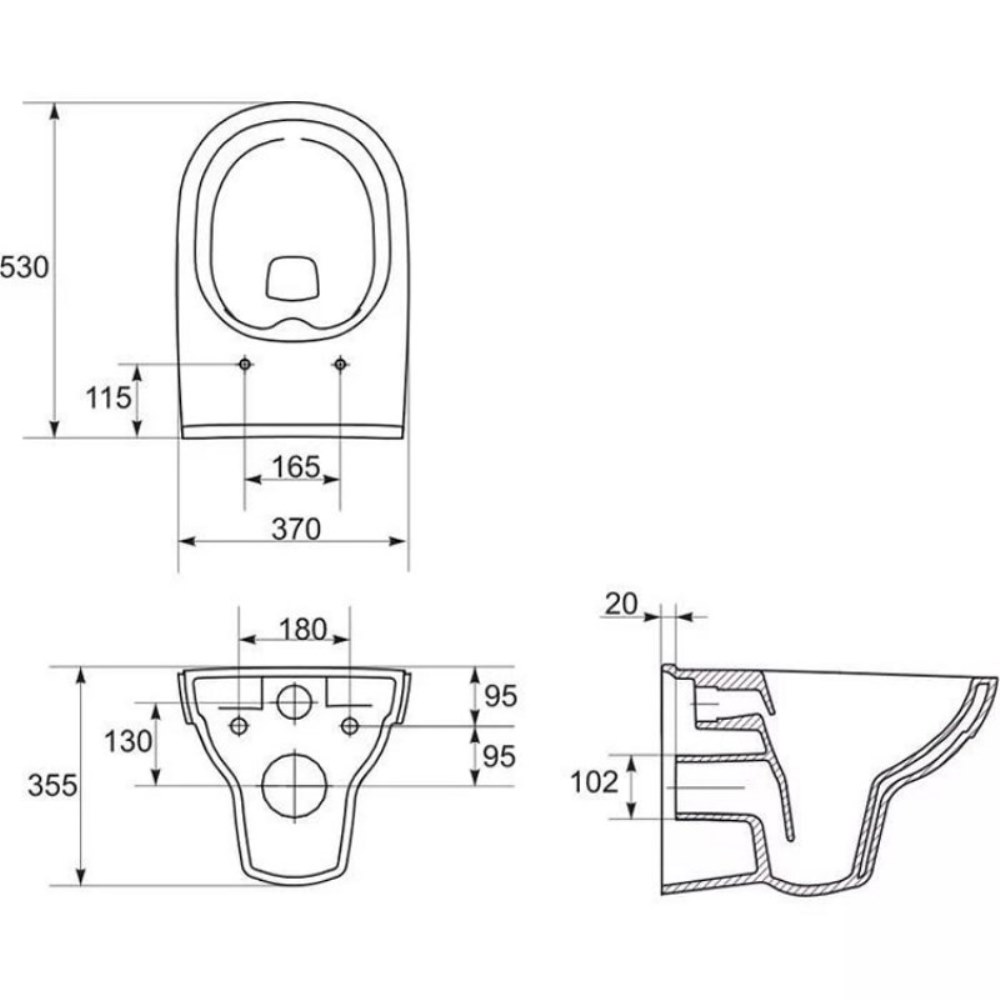 | Ширина унитаза, мм | 370 |