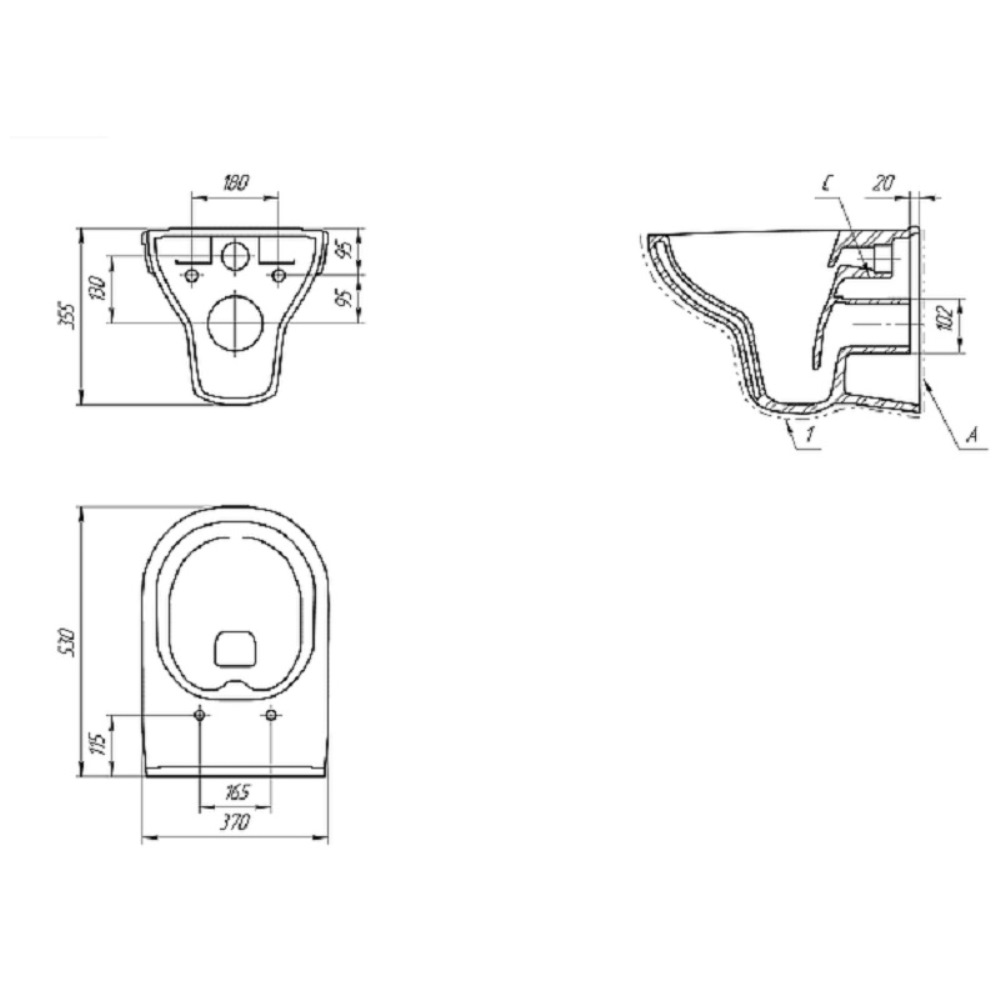 | Ширина унитаза, мм | 370 |