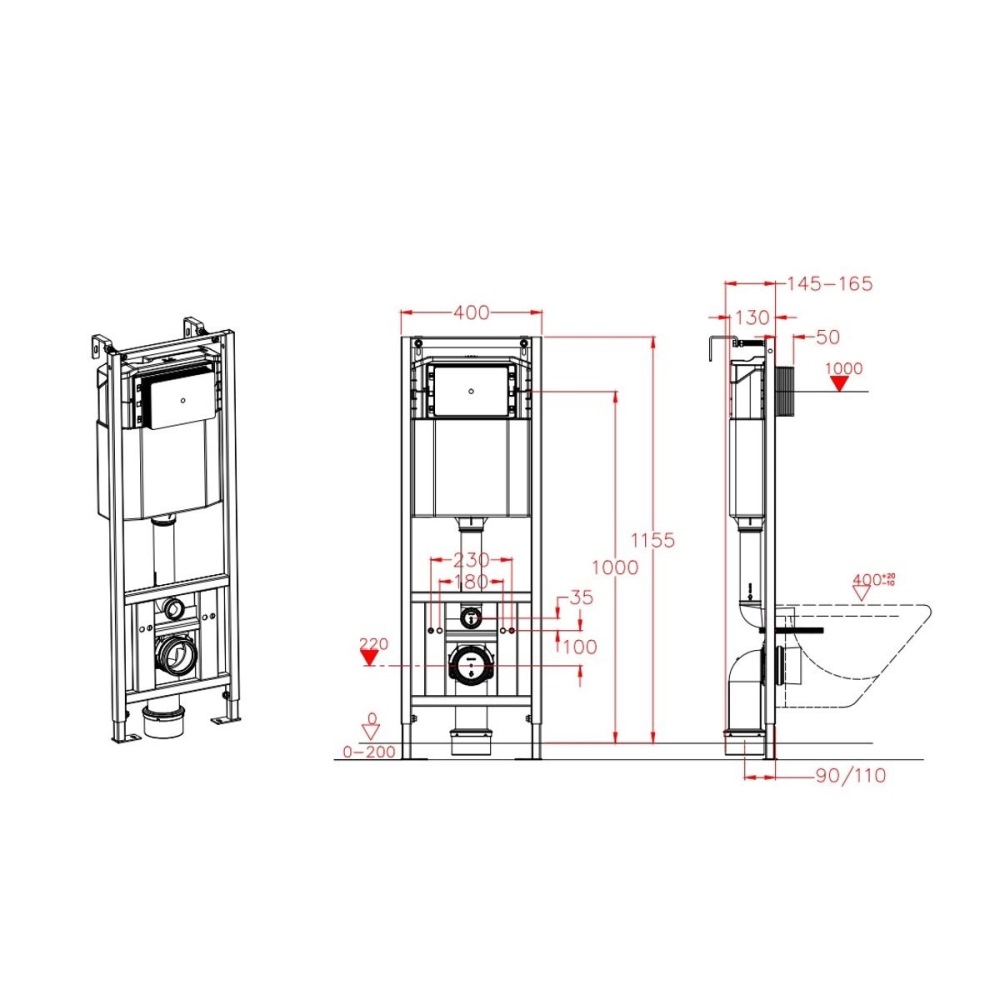 Инсталляция D&K DI для скрытого монтажа унитаза с клавишей смыва — это система, предназначенная для установки подвесного унитаза. Конструкция представляет собой прочную раму и бачок скрытого монтажа объемом 6 литров.