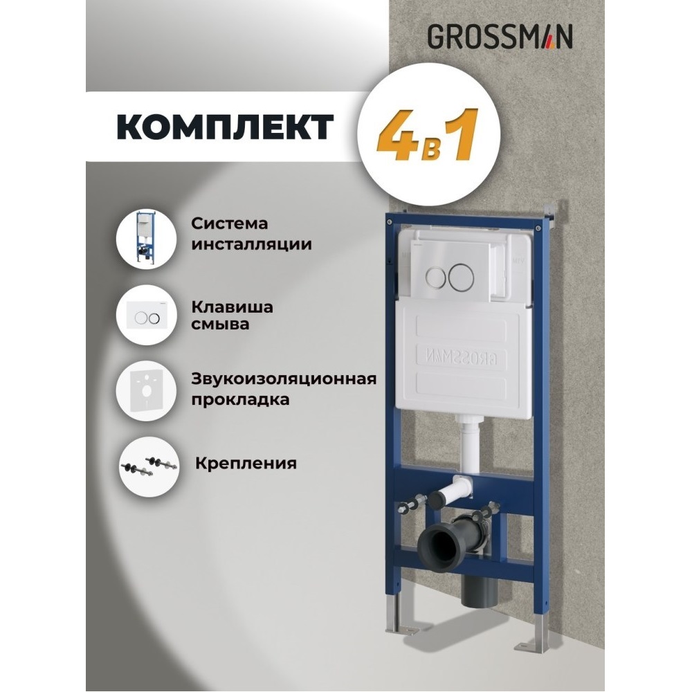Инсталляция Grossman для скрытого монтажа унитаза + клавиша смыва Galaxy Белый глянцевый 97.01.000