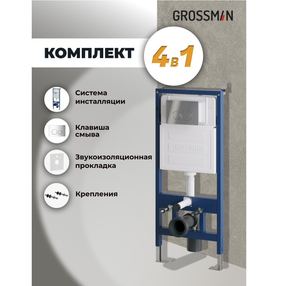 Инсталляция Grossman для скрытого монтажа унитаза + клавиша смыва Galaxy Хром глянцевый 97.01.100