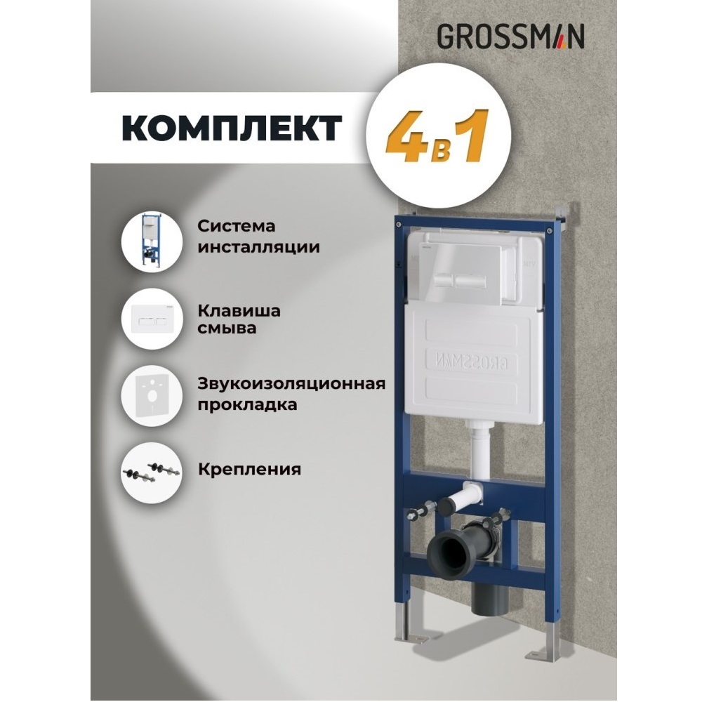 Инсталляция Grossman для скрытого монтажа унитаза + клавиша смыва Pragma Белый глянцевый 97.03.000