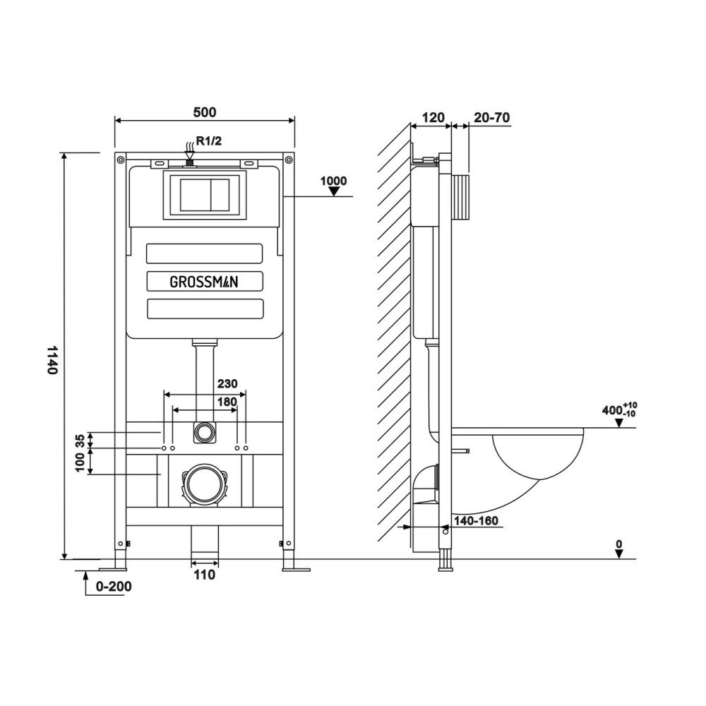 Инсталляция для унитаза Grossman с клавишей смыва Pragma — это система, предназначенная для установки подвесного унитаза. Конструкция представляет собой прочную раму и бачок скрытого монтажа объемом 9 литров.