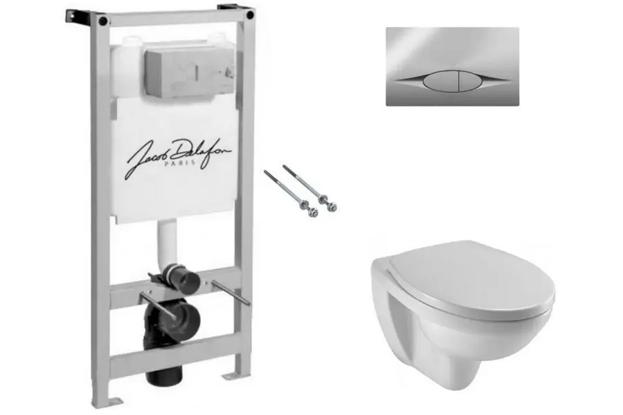 Комплектация: Инсталляция Jacob Delafon E29025-NF + Унитаз подвесной Jacob Delafon Patio E4187-00 + Крышка-сиденье Soft Close E70021-00 + Кнопка смыва, хром E29027-CP + Комплект креплений. Звукоизоляционная прокладка приобретается отдельно.