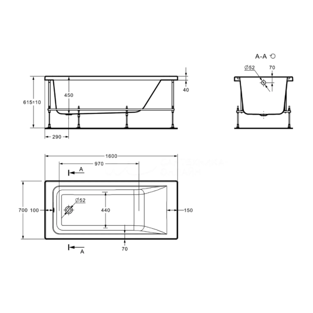 Каркас Roca Easy 160х70 (каркас,слив-перелив,креп.к стене,креп.к фронт.) ZRU9307664