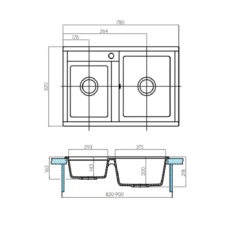 | Отверстие для смесителя | Нет |