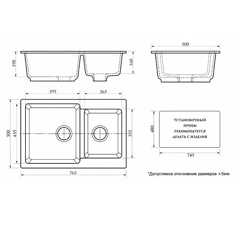 Мойка кухонная Azario Grand имеет размеры 76,5х50 см., ширина чаши: 39,5 см. Прямоугольная форма. Цена указана за мойку с сифоном.