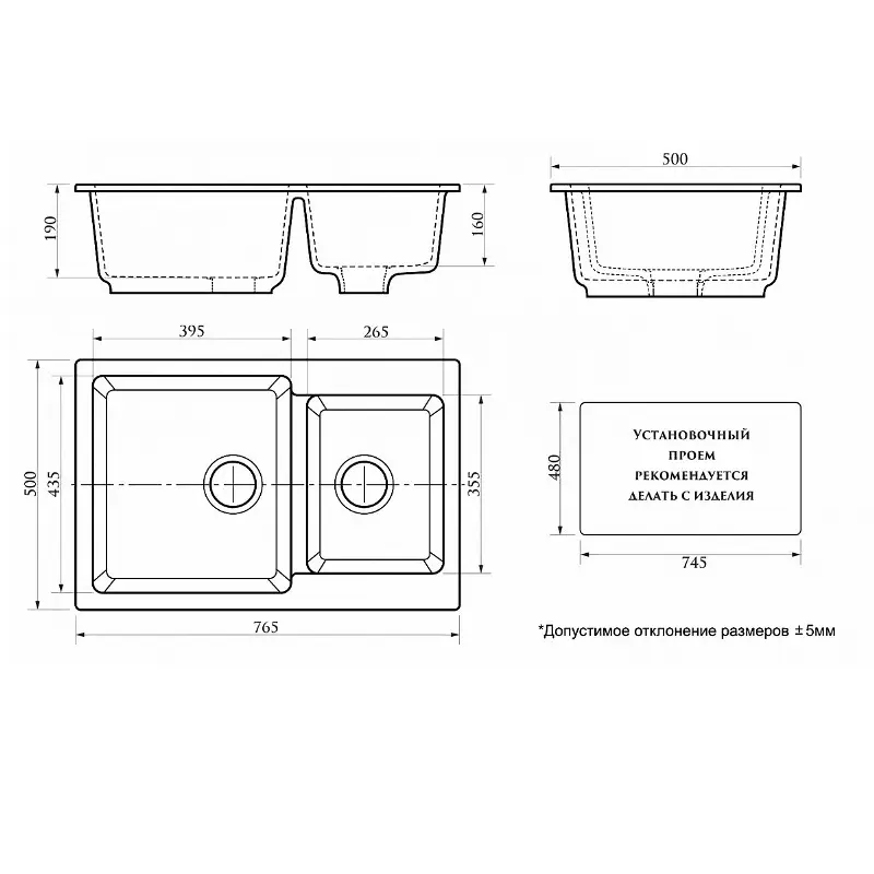 Мойка кухонная Azario Grand имеет размеры 76,5х50 см., ширина чаши: 39,5 см. Прямоугольная форма. Цена указана за мойку с сифоном.