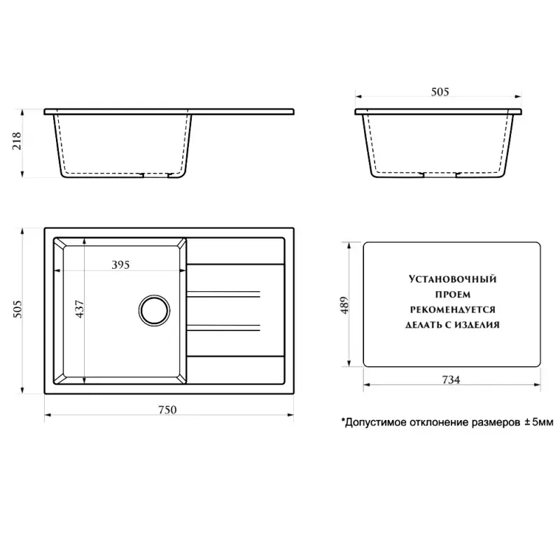 | Отверстие для смесителя | Нет |