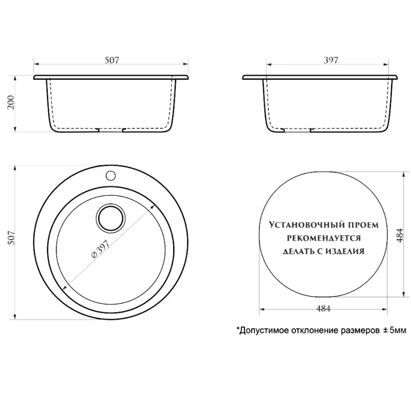 Мойка кухонная Azario Vital имеет размеры 50,7х50,7 см., ширина чаши: 39,7 см. Круглая форма. Цена указана за мойку с сифоном.