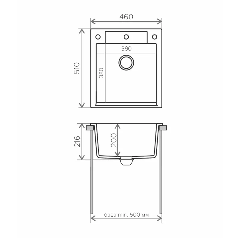 Мойка кухонная Polygran Argo имеет размеры 46х51 см., ширина чаши: 39 см. Прямоугольная форма. Цена указана за мойку со сливом-переливом.