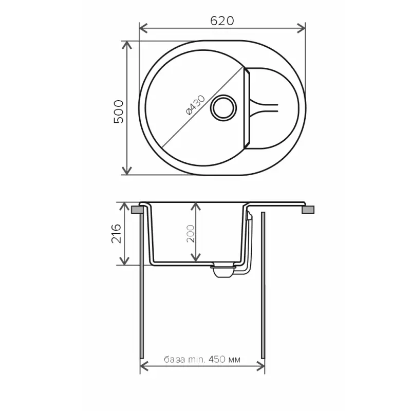 Мойка кухонная Polygran Atol имеет размеры 62х50 см., ширина чаши: 43 см. Овальная форма. Цена указана за мойку со сливом-переливом.