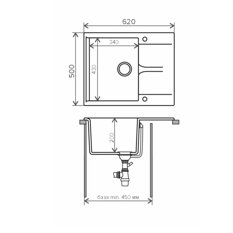 Мойка кухонная Polygran Gals имеет размеры 62х50 см., ширина чаши: 34 см. Прямоугольная форма. Цена указана за мойку со сливом-переливом.