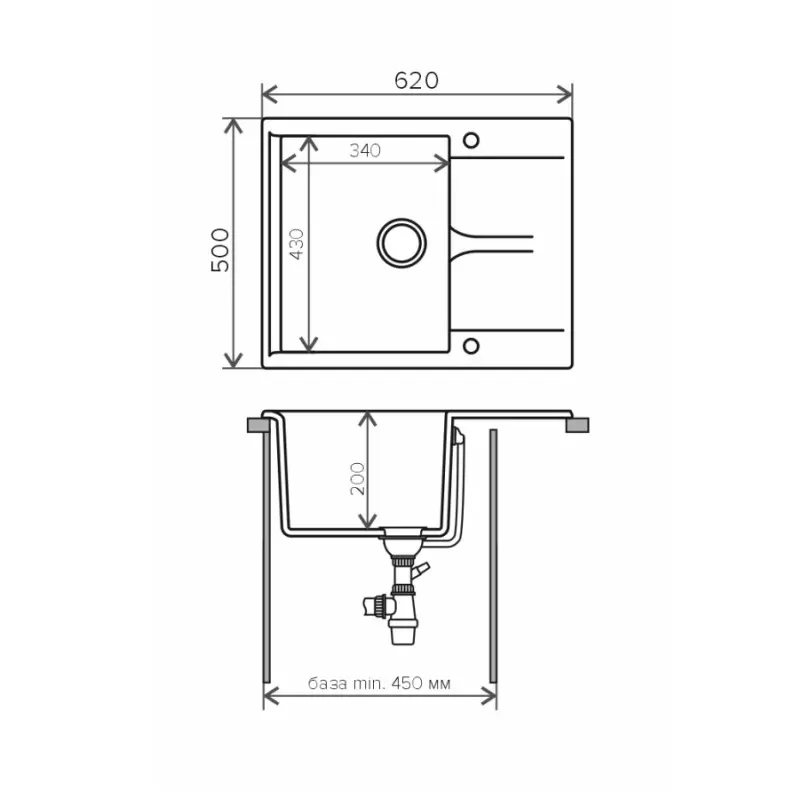 Мойка кухонная Polygran Gals имеет размеры 62х50 см., ширина чаши: 34 см. Прямоугольная форма. Цена указана за мойку со сливом-переливом.
