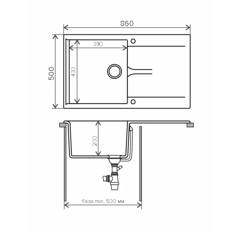 Мойка кухонная Polygran Gals имеет размеры 86х50 см., ширина чаши: 39 см. Прямоугольная форма. Цена указана за мойку со сливом-переливом.