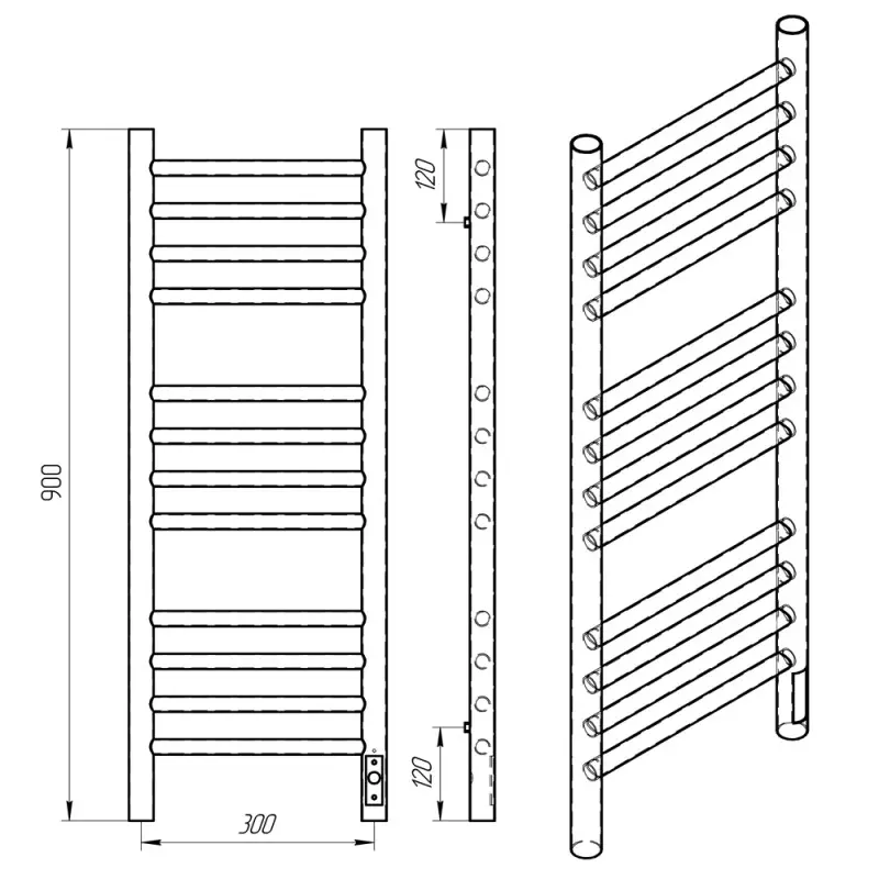 Полотенцесушитель электрический Laris Лаванда с высотой 90 см., используется для обогрева и сушки помещения. Нижнее подключение. Изготовлен из черной стали.