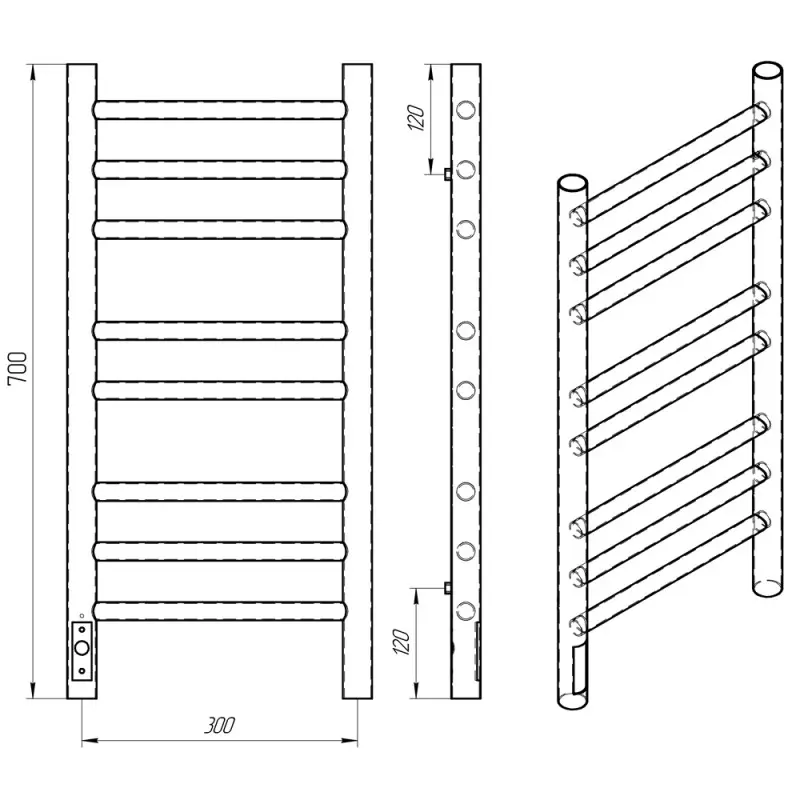 Полотенцесушитель электрический Laris Лаванда с высотой 70 см., используется для обогрева и сушки помещения. Нижнее подключение. Изготовлен из черной стали.