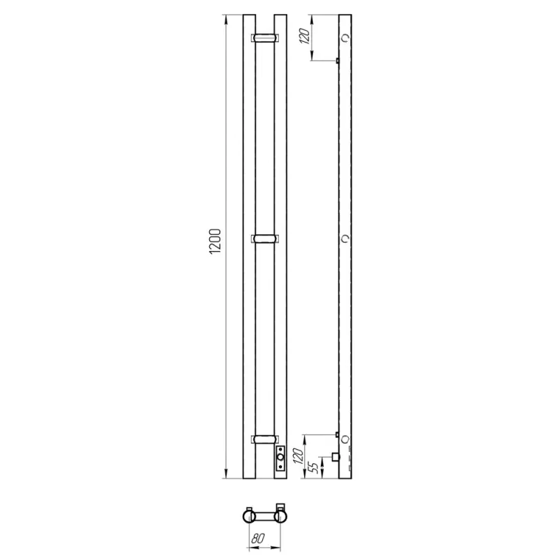 Полотенцесушитель электрический Laris Прайм Дуэт с высотой 120 см., используется для обогрева и сушки помещения. Нижнее подключение. Изготовлен из черной стали.