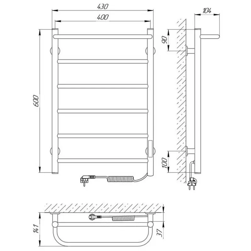 Полотенцесушитель электрический Laris Прайм с высотой 60 см., используется для обогрева и сушки помещения. Нижнее подключение. Изготовлен из нержавеющей стали.