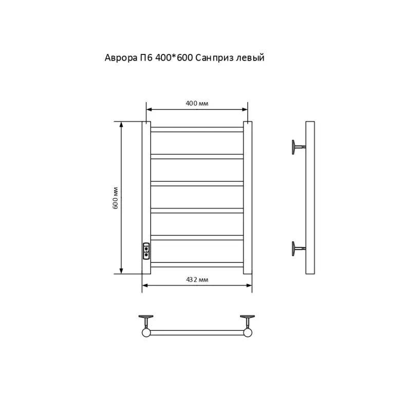 Полотенцесушитель электрический Санприз Аврора П6 400*600 11028 Хром глянцевый диммер слева